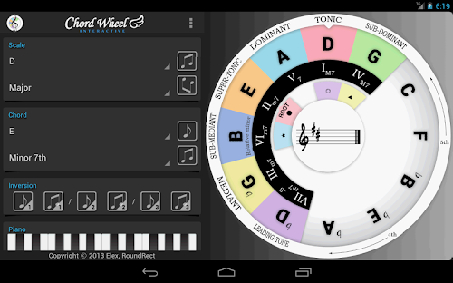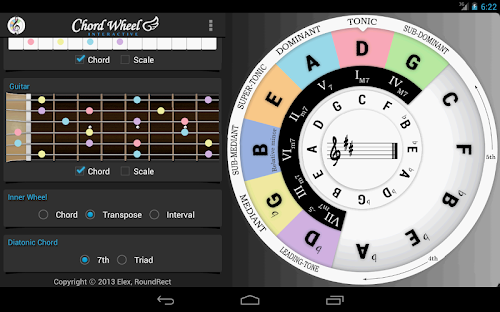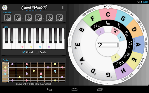 The Interactive Chord Wheel is an implementation of one of the most basic and significant music theory, 'Circle of fifths' on Android. This app is uniquely designed to represent the relationship between a scale and a chord.