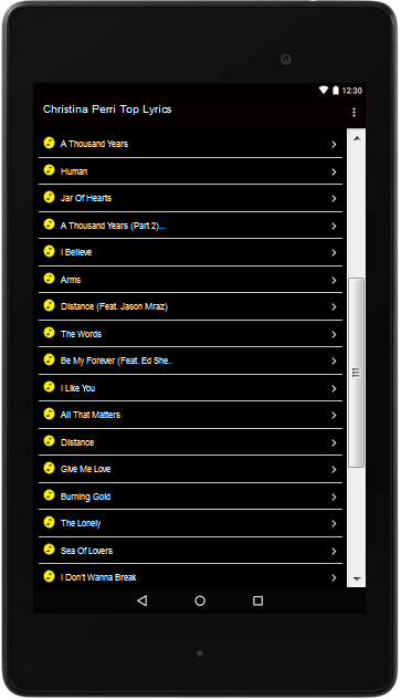 If you are looking to download other versions of Christina Perri Top Lyrics Android App, We have 1 version in our database. Please select one of them below to download.