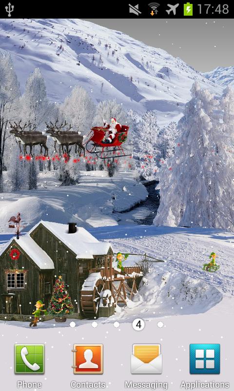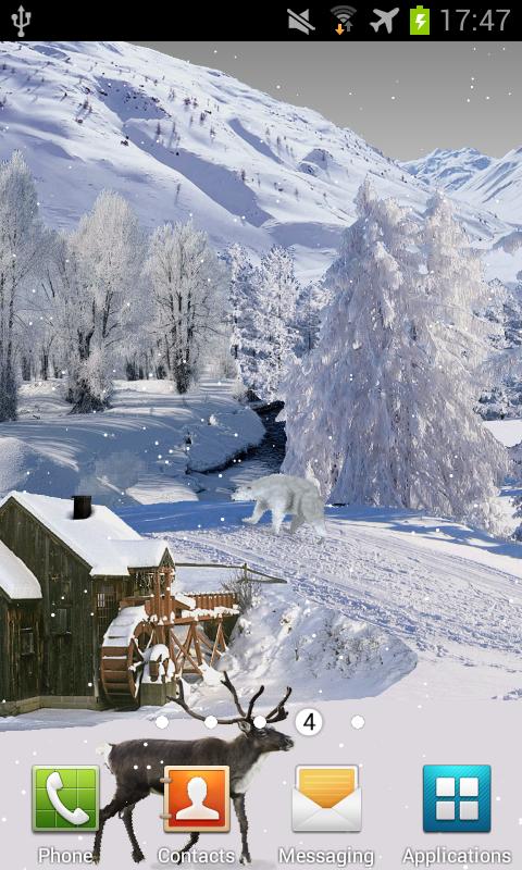 With Winter White Live Wallpaper feel the nature or the nature and the fantasy in this amazing Live Wallpaper. You can enjoy this magic winter landscape in his purest style (snow, mountains, trees, reindeers, bears…) or you can activate Christmas Mode and then fantastic creatures (Santa, elfs…) will appear…