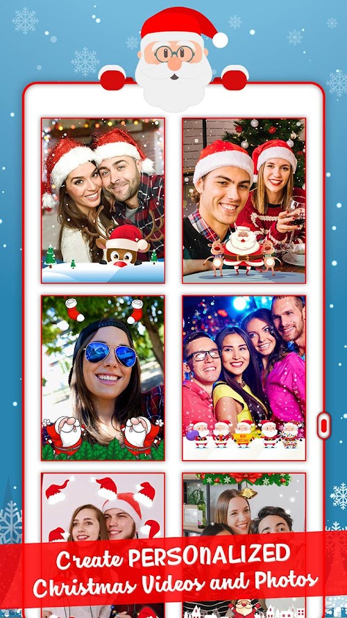 Christmas Camera allows you to create Festive short video selfies and photos with christmas effects. The most easiest to use app that has preset Christmas Effects to create Christmas Photo Frames and Effects and Christmas Video Selfies for your loved ones.