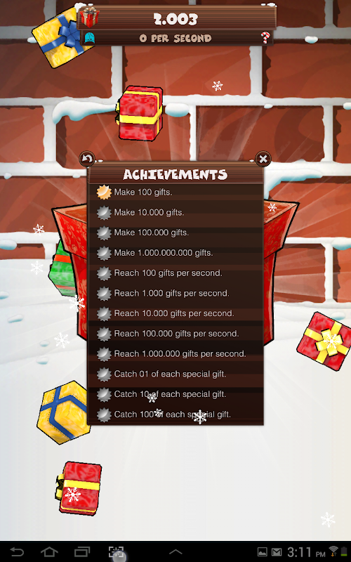 Collect gifts and use them to upgrade Santa's factory.