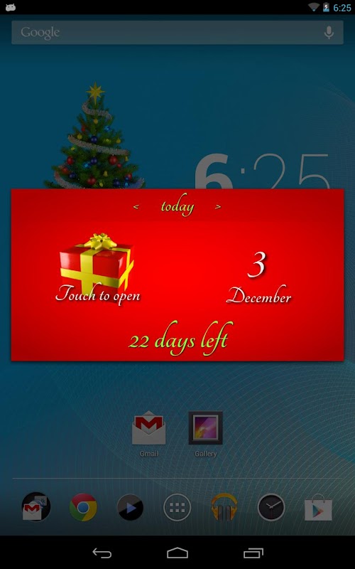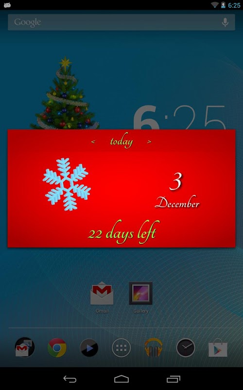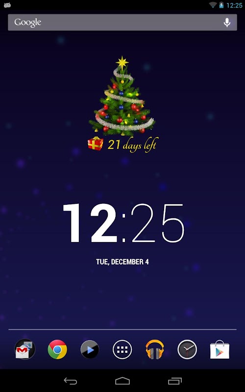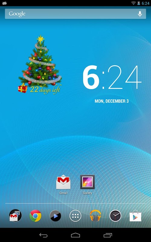 Set this widget on your homescreen! The tree has colored blinking lights and a countdown displaying how many days are left before Christmas.