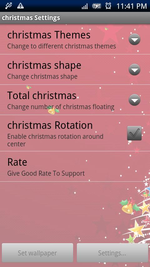 Christmas shape:Change Bubble color of Christmas Live Wallpaper,three color you can choose