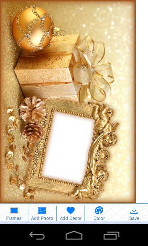 "Christmas Photo Frames" is a collection of more than 100 lovely photo frames of Christmas for you to decorating your lovely photos. It has the same function as the Love Photo Frames, Love Camera, and some other apps.