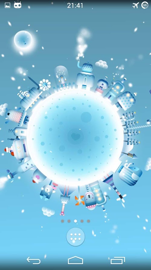 Gauli has created this wallpaper magical and wonderful for tablets and smartphones. Full of color and imagination, the whole family can enjoy it. You can see big and getting smaller, with a touch of your finger. With the message "Christmas Card Mode" will surprise everyone. An animated picture full of movement and imagination with animations that were hand drawn with great detail. Welcome to this miniature of a fun and magical planet.