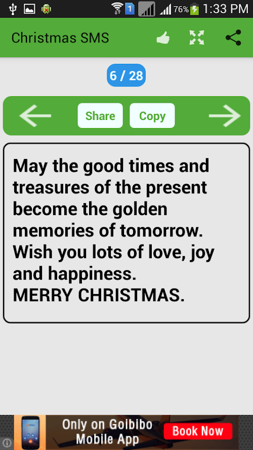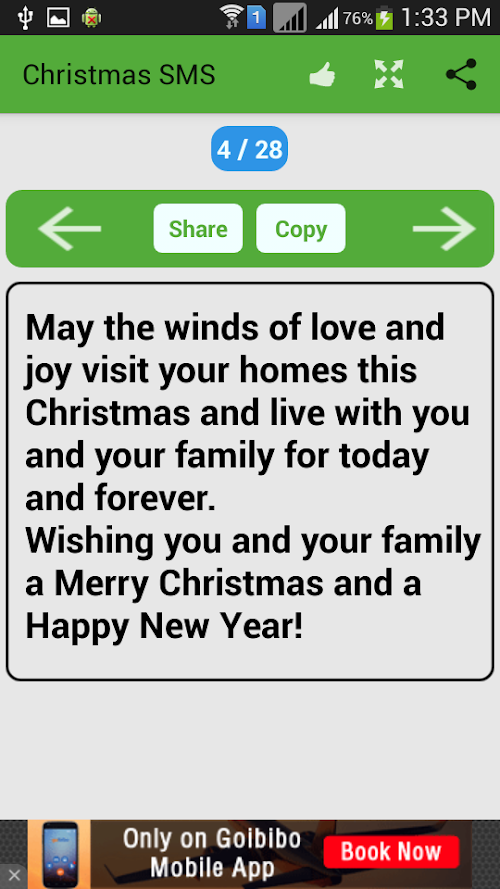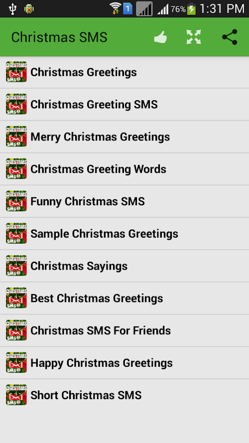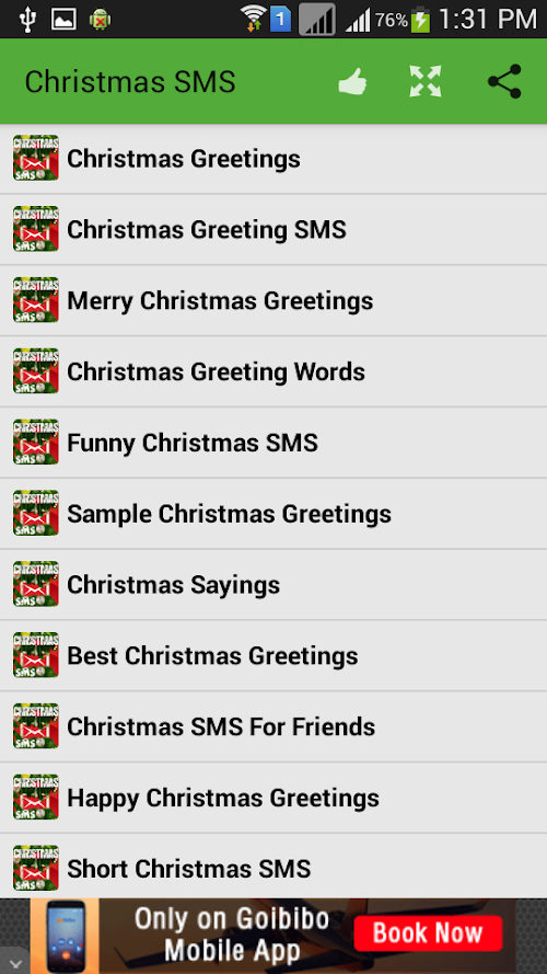 ♥ Completely offline and free SMS book containing about 50000+ Christmas SMS messages collection.