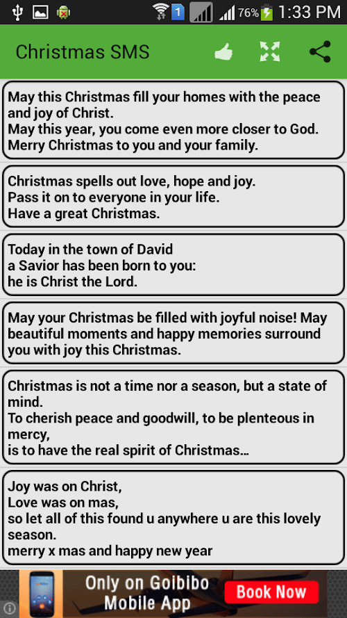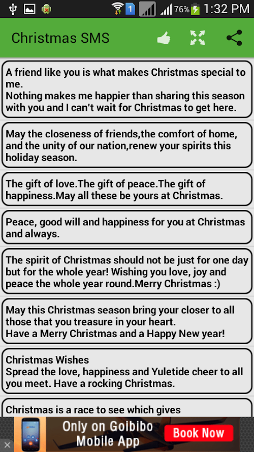 ♥ Christmas SMS Messages is a nice android application. it contains collection of Special Christmas SMS Messages.