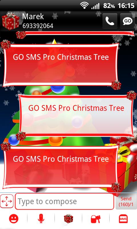 So start preparing for Xmas event today. Just install this free SMS Theme and decorate your phone. Let these fantastic colors will put your phone in a holiday mood. Beautiful, green Christmas tree with wonderfully colored balls and amazing, golden star on top of this will help you.