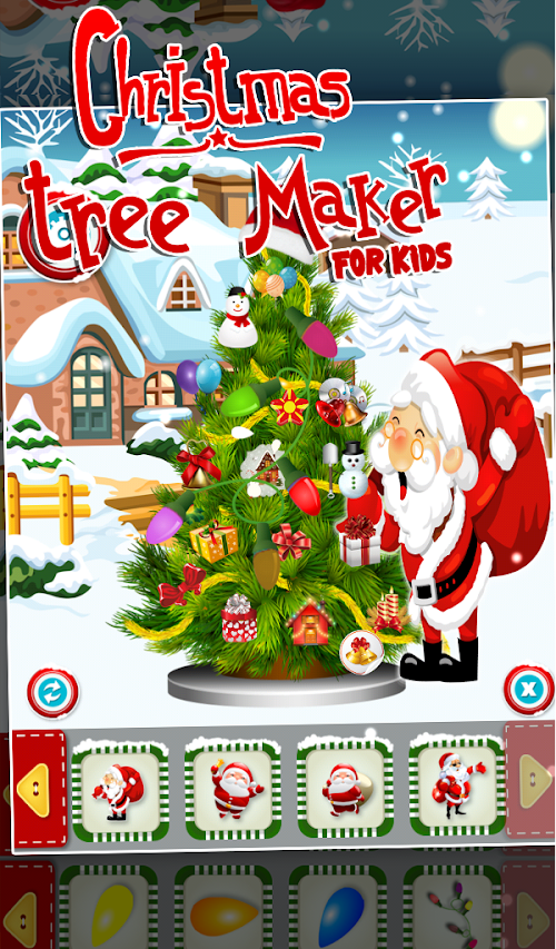 In this Christmas Tree Maker game your child will decorate the Christmas tree with beautiful lights, ribbons, ornaments, garlands, and other decorations.