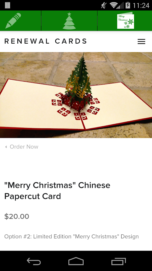 - We have added a fourth tab that connects you to our website where you can buy additional Christmas cards.