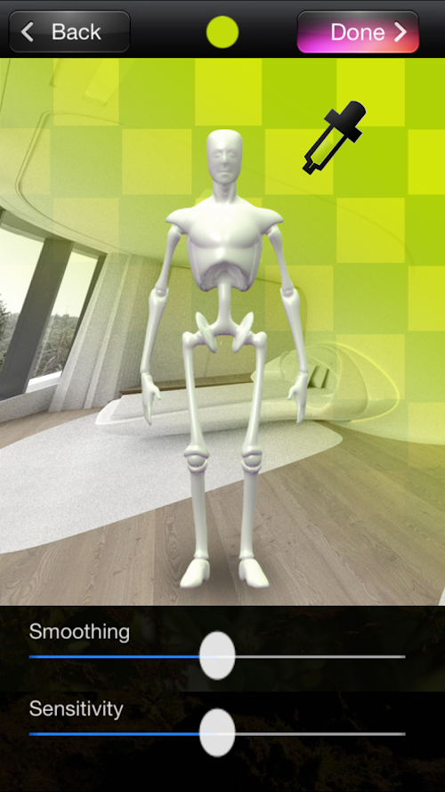 CHROMA KEY GREEN SCREEN STUDIO allows you to merge two photos deleting one selected color from the foreground image. It works with any color.