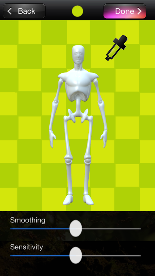Just load a foreground and background photos, tap to select the color you want to eliminate and adjust parameters. You will see them merged.