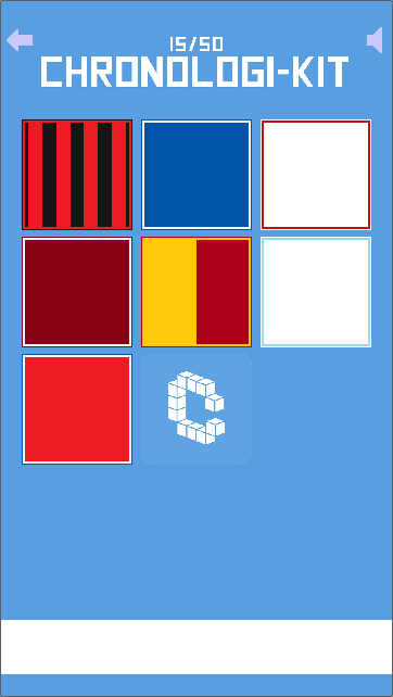 Chronologi-Kit tests the depth of your football knowledge. There are 148 players split across three levels that you have to guess, each player is represented by a sequence of squares that describe the teams they have played for.