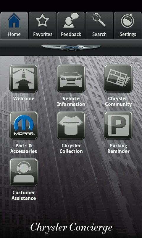 As a Chrysler vehicle owner, we know you are the resourceful type. That’s why we created this innovative “Chrysler CONCIERGE” app to put information right at your fingertips…where you need it, when you need it. Whether it’s providing information about specific product features relative to your new Chrysler vehicle, taking a tour through the Chrysler brand heritage, or connecting you with the extended Chrysler family, we know you’ll find the information within our app useful. So much so, we believe the Chrysler CONCIERGE app is the new “essential” for owners and fans of Chrysler vehicles.