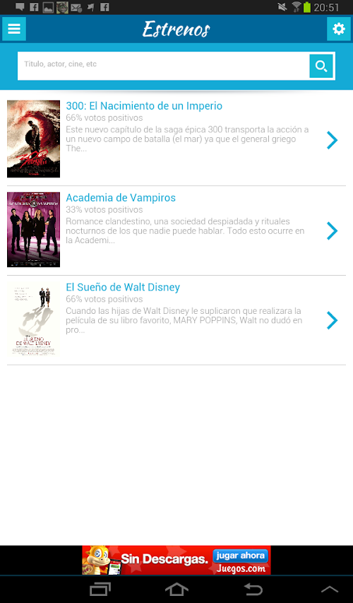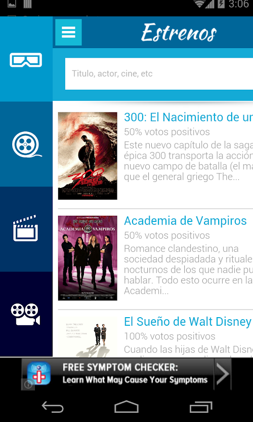 Cineros es una aplicación para ver la cartelera de cines de Rosario.
