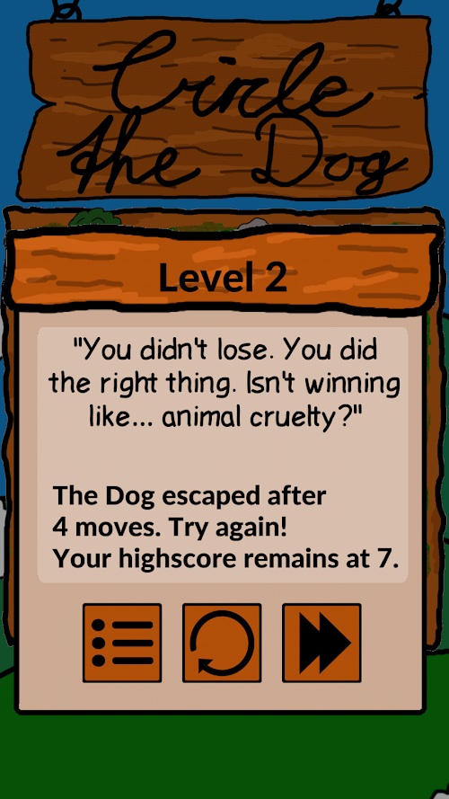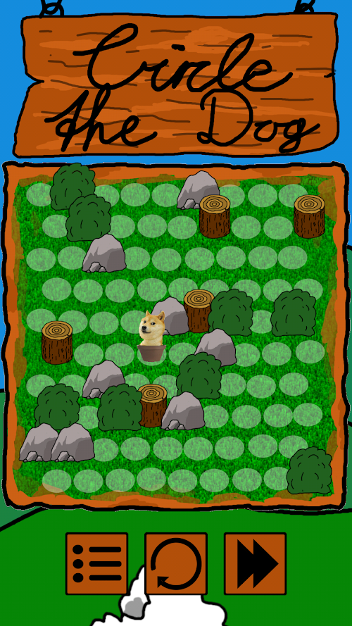 Can you circle the dog before it escapes? In Circle the Dog, a puzzle game based on "Circle the Cat", a dog is trying to find his way off the screen. Block him by placing barriers around him, but don't be fooled, the dog is smarter than you might think!