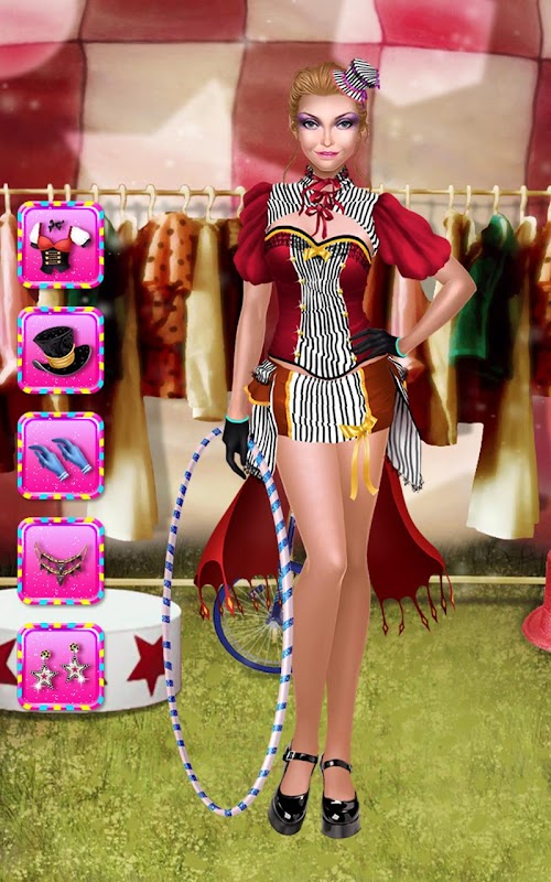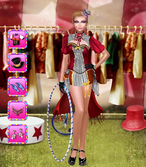 Have you ever helped an acrobat get ready for the big show? Now's your chance! Circus Carnival Makeover Salon is a funny dress up and makeover game that lets you put on makeup and pick out costumes for three different acrobat stars! Help them get ready for the big show tonight by giving each one a makeover and a new dress, then snap photos with their animal partners. Lions, elephants, monkeys and acrobats all under one roof. It's going to be a fun (and funny) evening!