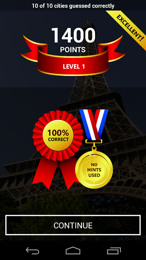 This is the first full version of the Europe cities quiz game with all the 16 levels full of cities to guess.