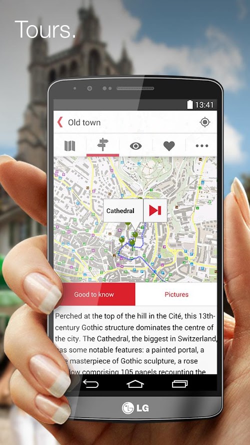 You can explore the city on your own through various exciting tours based on text and images. Information about public transport ensures that you won’t get lost! You will also find all the information you need via the integrated full text search.