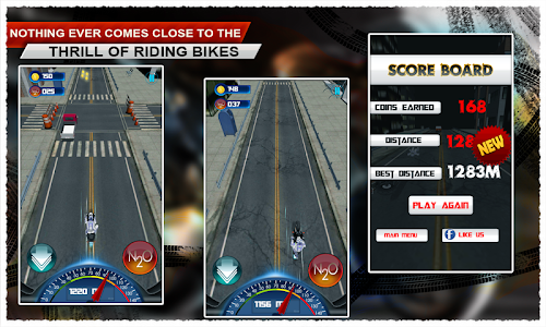 Feel the thrill of undisputed racing action in City Moto BikeRacer. In this game you can ride the motorcycle in two different locations one is at daytime map and other one is night scene map. Different kind of bikes to choose from Hunter, Eagle, Racer, RacerX, Bike models. Travel more distance to set a record