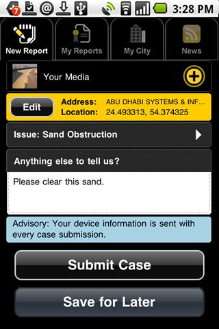 By using this mobile application, residents can report incidents by taking a photo, recording a video or audio clip and using the CityGuard interactive map to record the exact location of the incident. CityGuard will automatically create a case for the incident with the Abu Dhabi Government Contact Centre which will promptly assign the case to the appropriate Government Entity for resolution. From "Open" to "Closed", residents can follow their case by using the CityGuard mobile application, going online to http://www.abudhabi.ae, or directly contacting the Abu Dhabi Government Contact Centre at 800 555 or [email protected].
