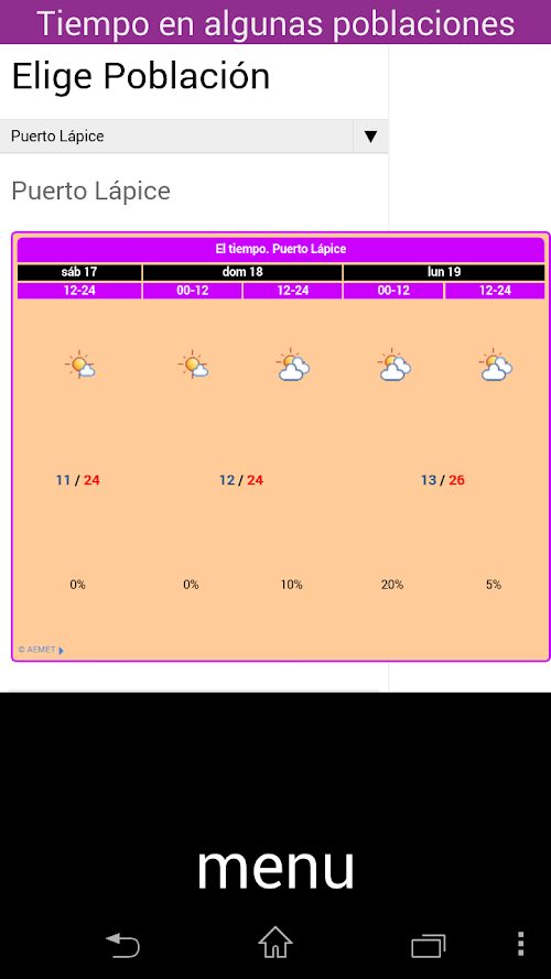 Ademas también podrá saber el tiempo que hará en los tres últimos días en algunas poblaciones.
