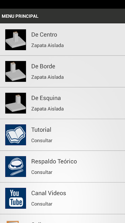 Con esta herramienta podrá realizar la revisión y dimensionamiento de zapatas aisladas de centro , de esquina y de borde, cuenta con el soporte teórico para un diseño completo, y acceso al canal de vídeos didácticos para su uso completo.With this tool you can perform the review and design of footings center, corner and edge, has the theoretical support for a complete design and channel access educational films for full use.