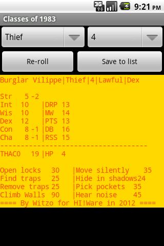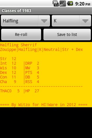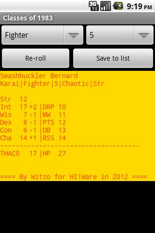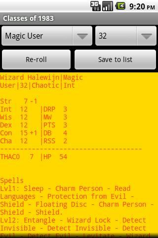 Clicking Save to list will add the current character to the text file ClassesOf1983RolledCharacters.txt in your local home directory. Then you can move it or copy it anywhere to use the character in your game notes.