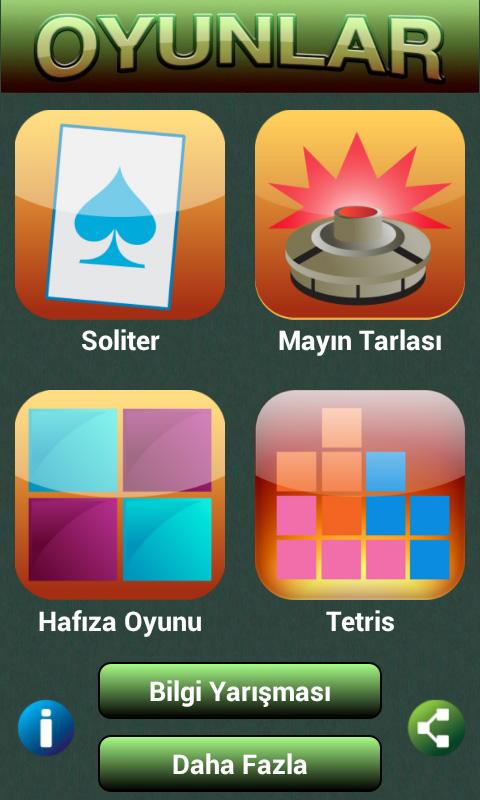 We are proud to present our application to service. You can find the most popular classic games in our application. Solitaire game is a world-wide, easy, and addictive game. Minesweeper is a unique game to test your attention and and intelligence. Memory game has a lot of fun develops your memory.