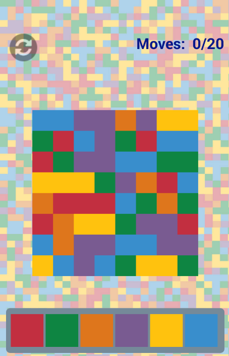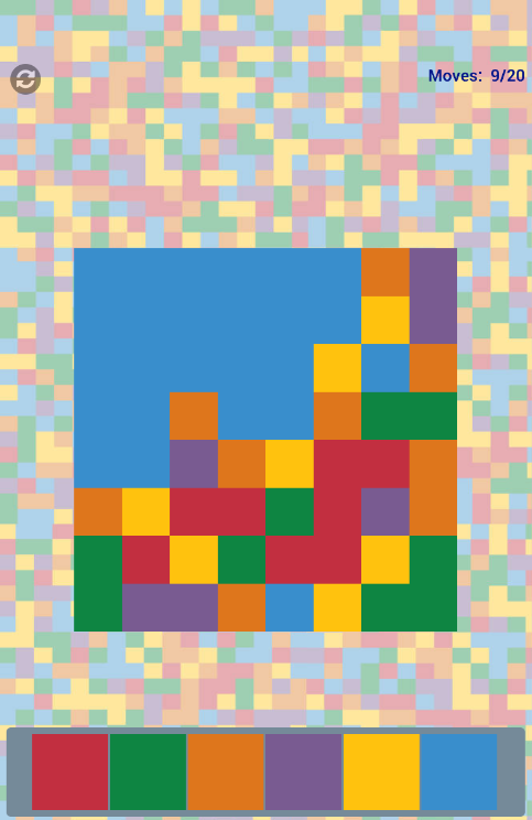 Starting from the top-left corner, your aim is to fill the board with one colour. To play, click on the coloured tiles at the bottom of the screen. Choose your next move carefully - every time you select a colour that touches your flooded area, you'll gain those squares too!
