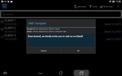 Clients SMS Reminder allows you to send SMS to your clients about their incoming meeting.
