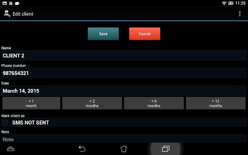 You have the option to change and edit your template message, to change the approaching period, to backup and restore data (In Full version), and tune your template message.