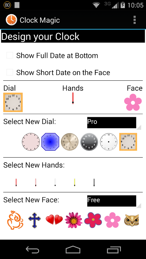 Design your own analog clock. Select a dial, a picture to display on the dial and even the hands!