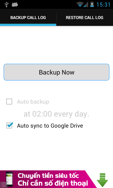 * Note: Also, go to https://drive.google.com then click to "calllogsstorage" folder, now you can see all your Call Log Backup files.