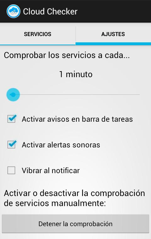 Cloud Checker se encarga de comprobar el estado de tus servidores, páginas webs u otros servicios en la nube. Cuando uno de ellos falle la aplicación avisa mediante notificaciones y, si así lo deseas, mediante sintetizador de voz. Permite elegir el tiempo entre una comprobación y otra además de realizar comprobaciones manuales cuando se deseé.