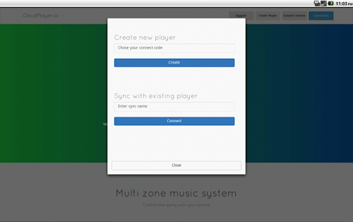 simply open the cloud player app and turn your phone/pc/tablet into a player (it works best when plugged into some speakers). Now all of your friends can connect to it and add of their favourite songs/videos to the players queue with absolute ease.