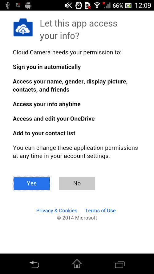 Photos or videos taken by this app will be uploaded automatically to your OneDrive immediately.