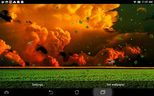 Get this “free download “and let this green wallpaper wish you a happy St Patricks day! You will fall in love with your green screen as soon as you see all “Clover Backgrounds” – the fairy garden holds many, many surprises. Red clover and fireflies will mesmerize you with the flickering green light. Have good fortune with this cool talisman! Go green and follow the Rocky Road to Dublin – each green leaf on your path to Dublin - Ireland will make you feel that spring is in the air. Sprinkle the fairy dust with one of the best apps for Android™. The sweetest Irish drinking song will be playing in your head whenever you gaze at this amazing desktop wallpaper inspired by the Irish symbols and nature images. St Patrick's day 2014 is just around the corner! If you adore Ireland, the Irish dancing and Saint Patricks day, this live application will take you to the magical flowery fields of green grass. Pick among the good luck charms “St. Patrick Wallpaper” offers and have fun with the interactive features – choose the speed and density of the green leaves, shamrocks and bees! 4 leaf clovers are everywhere! Each clover leaf will brighten up the cool backgrounds depicting the gorgeous sunrise or sunset. Let the boom of shamrock and the purple flowers explode on your Samsung Galaxy mobile phone while you gaze at the beautiful scenery. You are about to get lucky – download “Clover Live Wallpaper” and let the boom of clovers paint your world green. Here's your ticket to a wonderful world of nature - get this flower wallpaper and fall in love with the intricate, yet simple design of “Clover Wallpaper”. Meet the sweet leprechaun and find his pot of gold and gold coins, all for free.