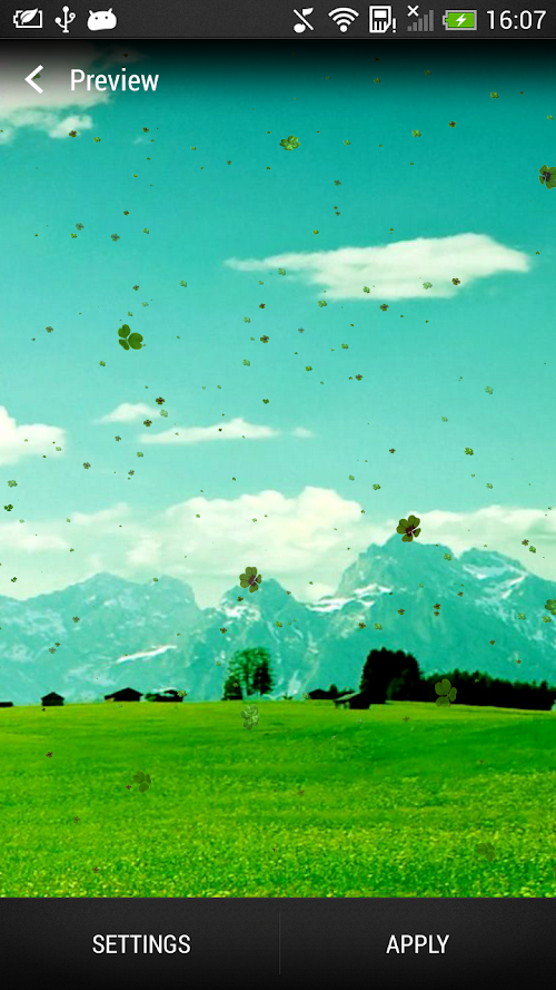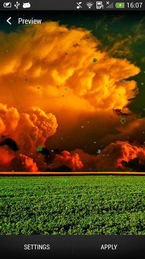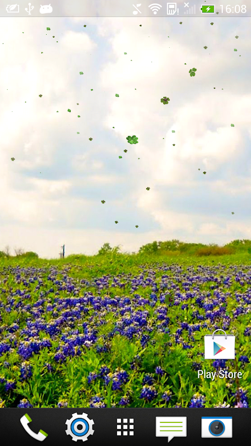 Clover Live Wallpaper is a fantastic “live wallpaper” inspired by one of the most cherished holidays and the beloved Patron saint. Enter the green world of magic, leprechauns and fairies and make this free app your own lucky charm. Decorate your phone or tablet with the cute “four leaf clover” of your choice. Start the search for your own pot of gold...is it somewhere over the rainbow, or right here?, “Clover LWP” brings the luck of the Irish with ten lovely green backgrounds for St. Patrick’s Day – give your new mobile phone the rejuvenating green hue. Turn your luck around with this festive background wallpaper and enjoy in the gentle dance of the Irish clover across your screen.