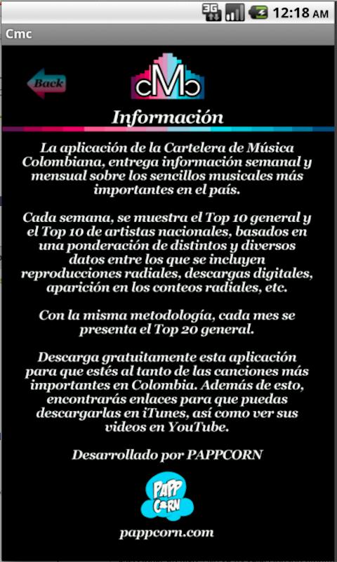 ¡Descarga GRATIS la aplicación de la Cartelera de Música de Colombia (CMC) y mantente al tanto de las canciones más populares!