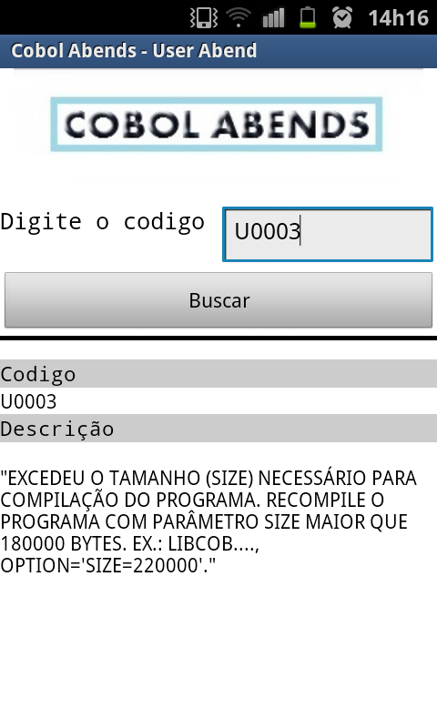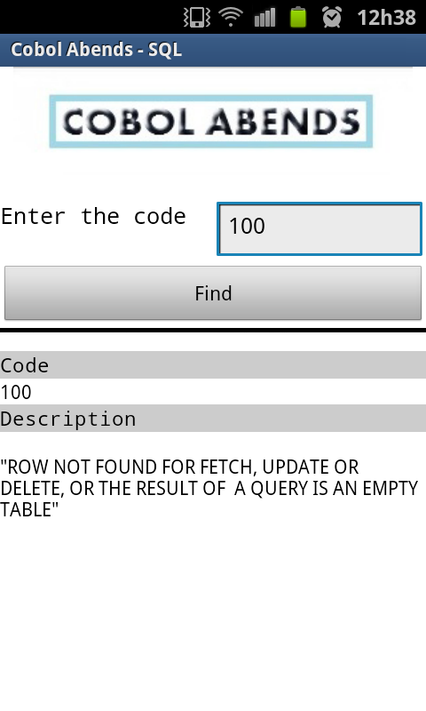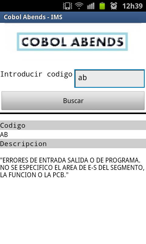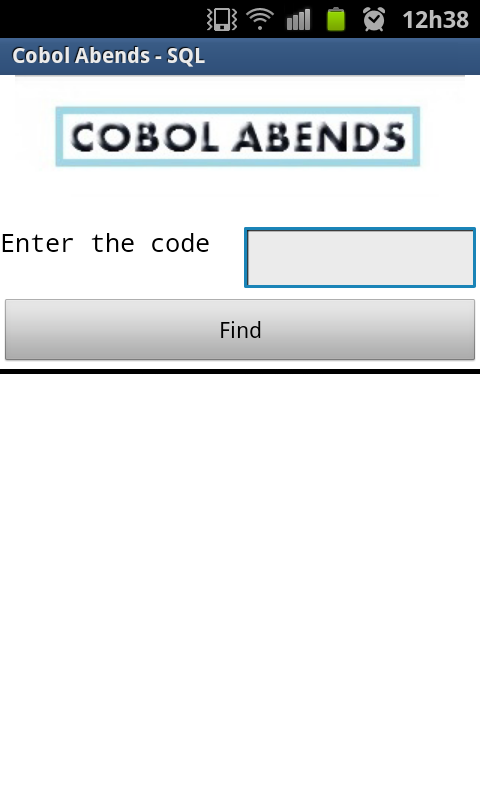 The purpose of this application is to search the error codes (abends) generated by Cobol programs or jobs executed on the Mainframe environment.