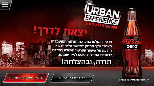 אז למה אתם מחכים? הורידו את האפליקציה והירשמו להרפתקה הכי גדולה של חייכם. Coca-Cola ZERO URBAN EXPERIENCE