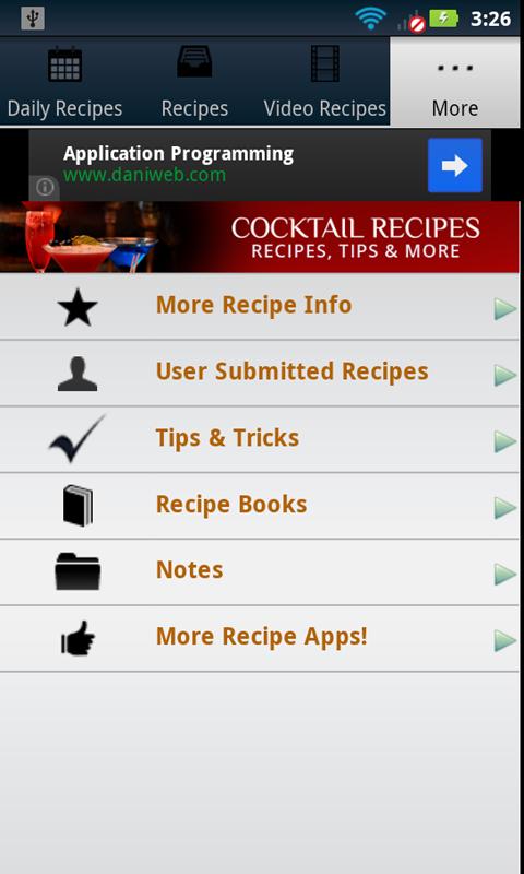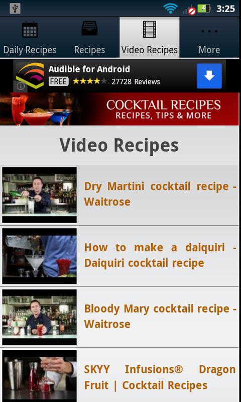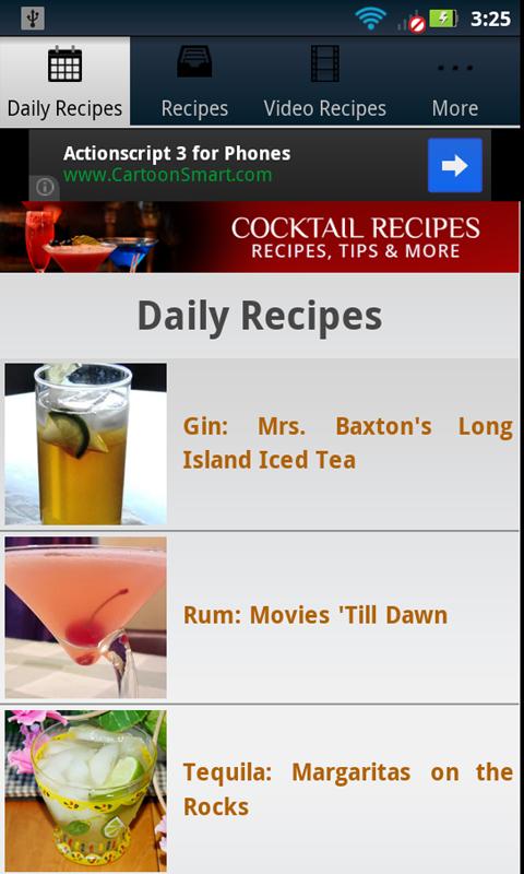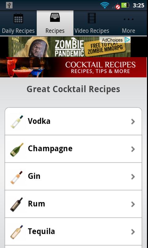 Not only will you find almost 150 common cocktail recipes, but they are broken down into convenient categories according to they type of cocktail want to make. Video recipes will show you exactly what to do, and Daily Recipes will give you brand new recipes EVERY DAY!