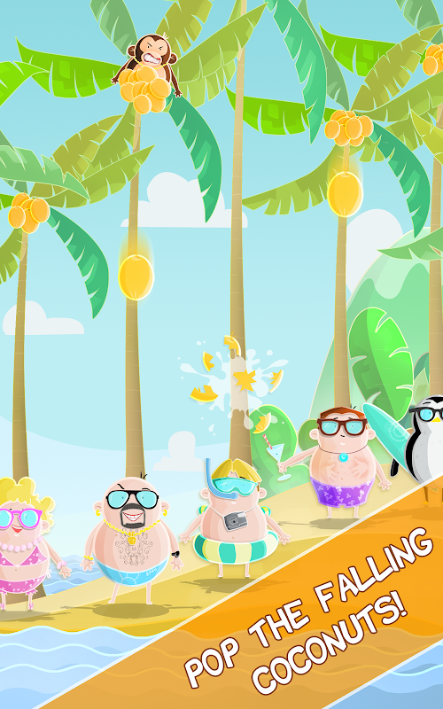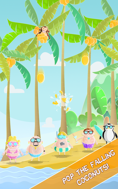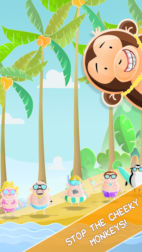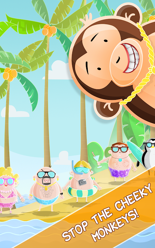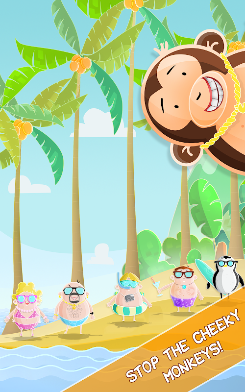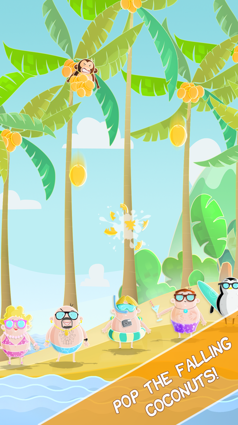 Don't let the cheeky monkeys ruin a good vacation! Tap the coconuts to break them before they hit the happy vacationers. Those vacationers are not the sharpest tools in the shed. After hours of baking in the sun, they will need all the help they can get.