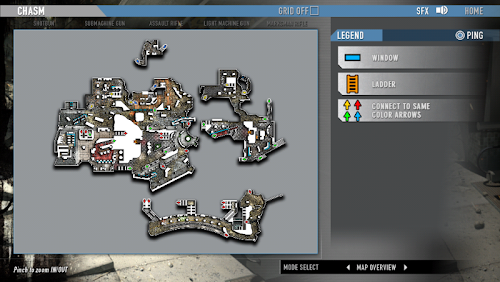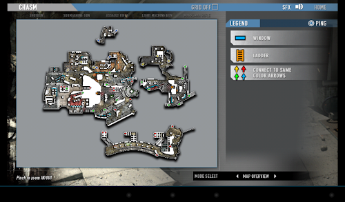 Callouts and key locations identified for each gameplay mode