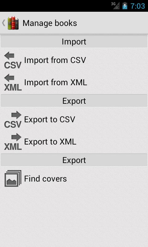 * Importing and exporting book to CSV and XML so that they can be synchronized between devices.