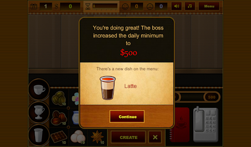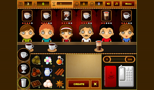 Prepare coffee drinks for your customers quickly and accurately to meet the daily targets and pass each level. Check your recipe book to prepare each drink correctly. Click the phone to order more supplies when you're running low!