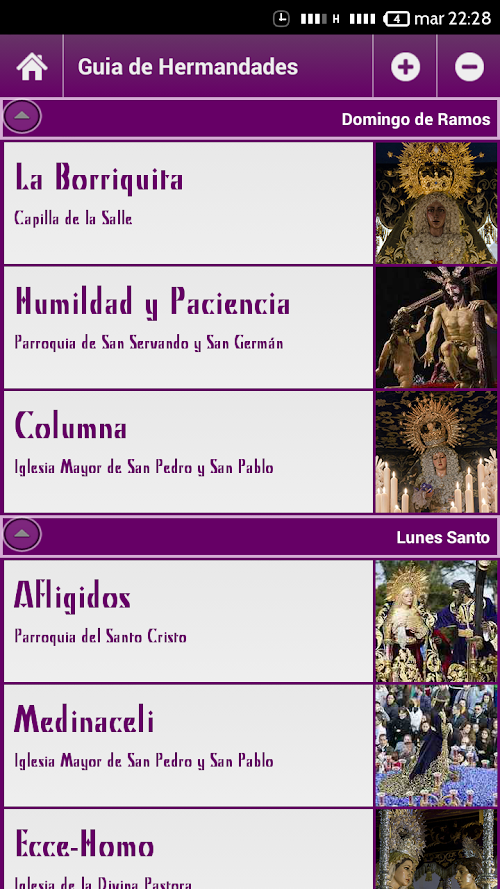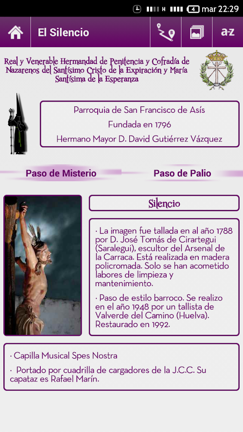 La aplicación de la Semana Santa de San Fernando. Incluye todos los datos, horarios, itinerários sobre google maps, galerías fotográficas de las diferentes hermandades. También puede usar el servicio de geolocalización para saber al instante donde se encuentran las diferentes hermandades que están procesionando. Servicio de alertas, utilizado por las hermandades para avisar de los diferentes acontecimientos que se vayan sucediendo. Además del mas preciso tiempo meteorológico. Como novedades se ha introducido contenido multimedia, integración con redes sociales como Twitter y el primer paso para crear el gran trivial cofrade de San Fernando. Una aplicación a la altura de nuestra semana grande.Applying Easter San Fernando. Includes all the data, schedules, itineraries on google maps, photo galleries of the different brotherhoods. You can also use the geolocation service to know instantly where the different brotherhoods that are procesionando. Alerts Service, used by the brotherhoods to warn of the various events that will be happening. In addition to more accurate weather. As new media is introduced, integration with social networks like Twitter and the first step to create the big brother of San Fernando trivial. An application up to our big week.