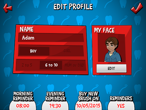 • Each brusher in the family can take a photo and put themselves in the game with up to ten profiles to keep up-to-date on how their brushing adventure is going.