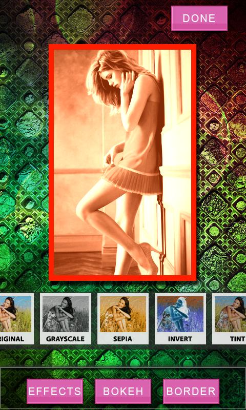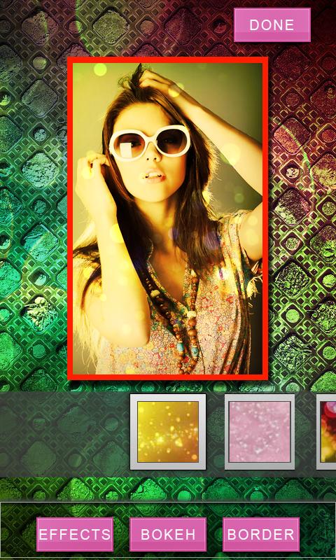 This application contains bokeh ,image effects and 23 different color border are there for collage photos.